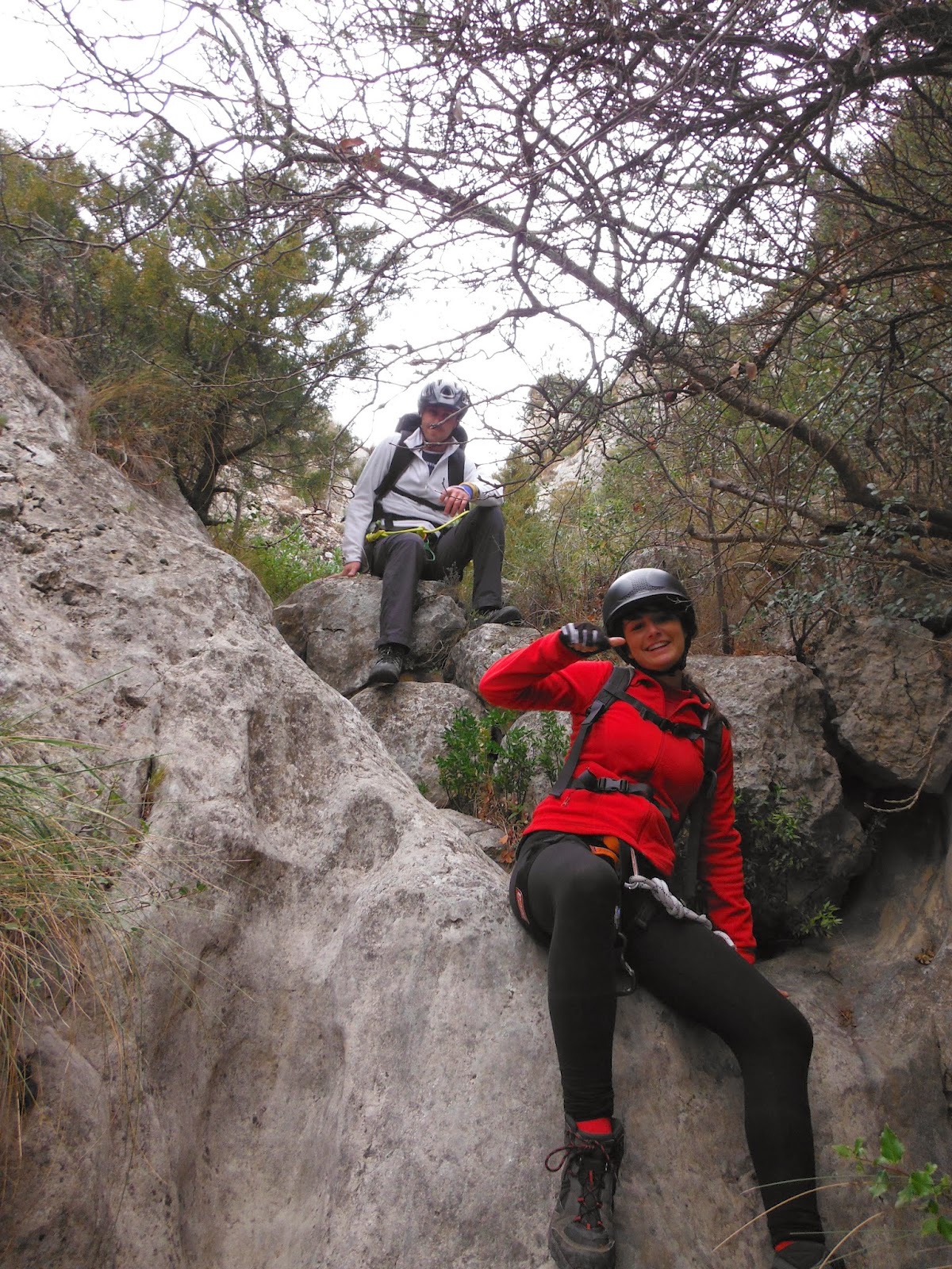 Hoy tocaba de nuevo este pequeño, fácil y bonito barranco de 200 metros de longitud y 10 rapeles destrepables gracias a una pequeña ferrata que tiene instalada y situado en la localidad de Ibi, y digo de nuevo por que el pasado día 27 ya lo realicé guiando, junto con Antonio y los profesores, a los alumnos del TCAF IES Haygon de San Vicente del Raspeig grupo A, hoy tocaba el grupo B.