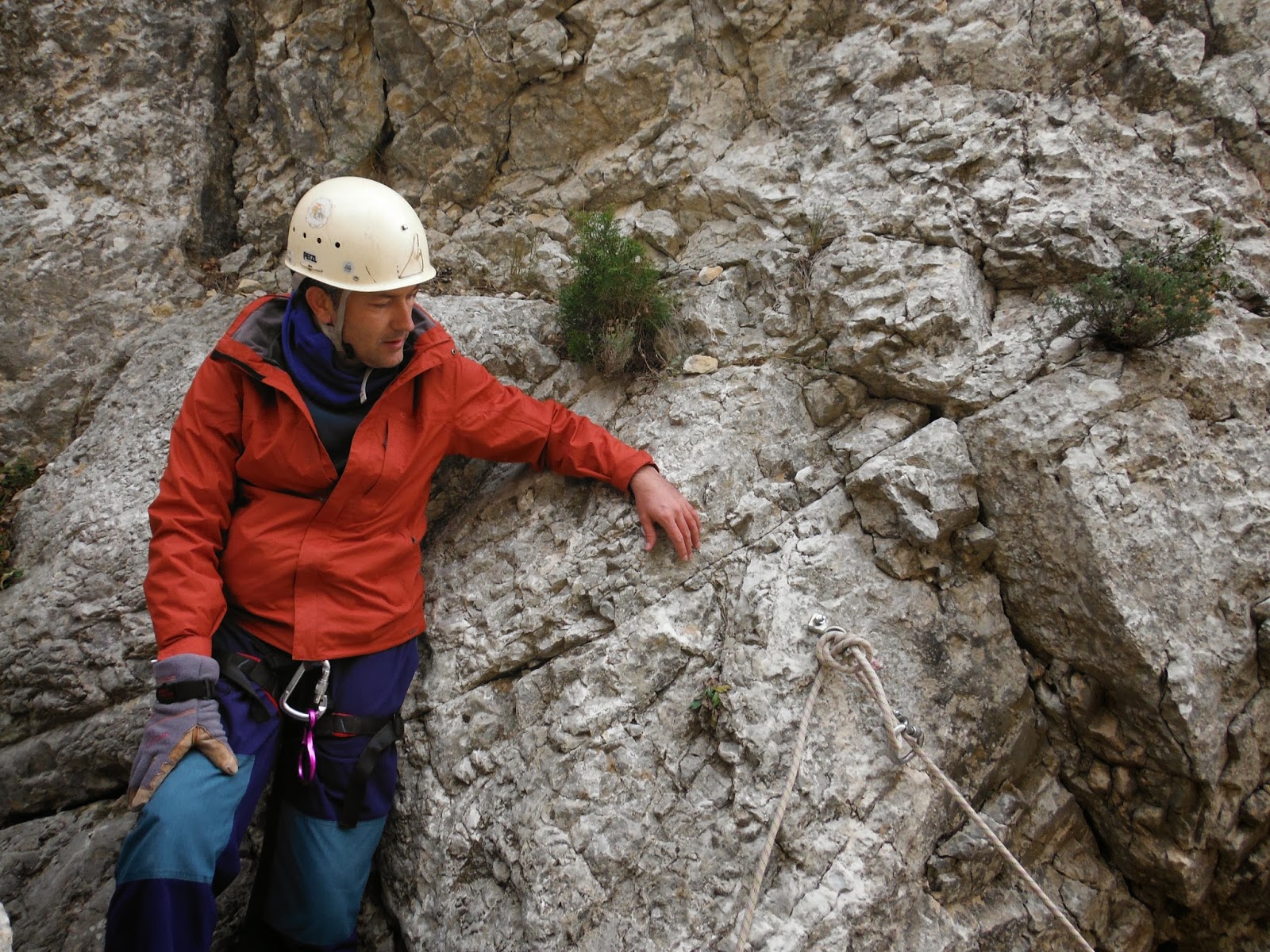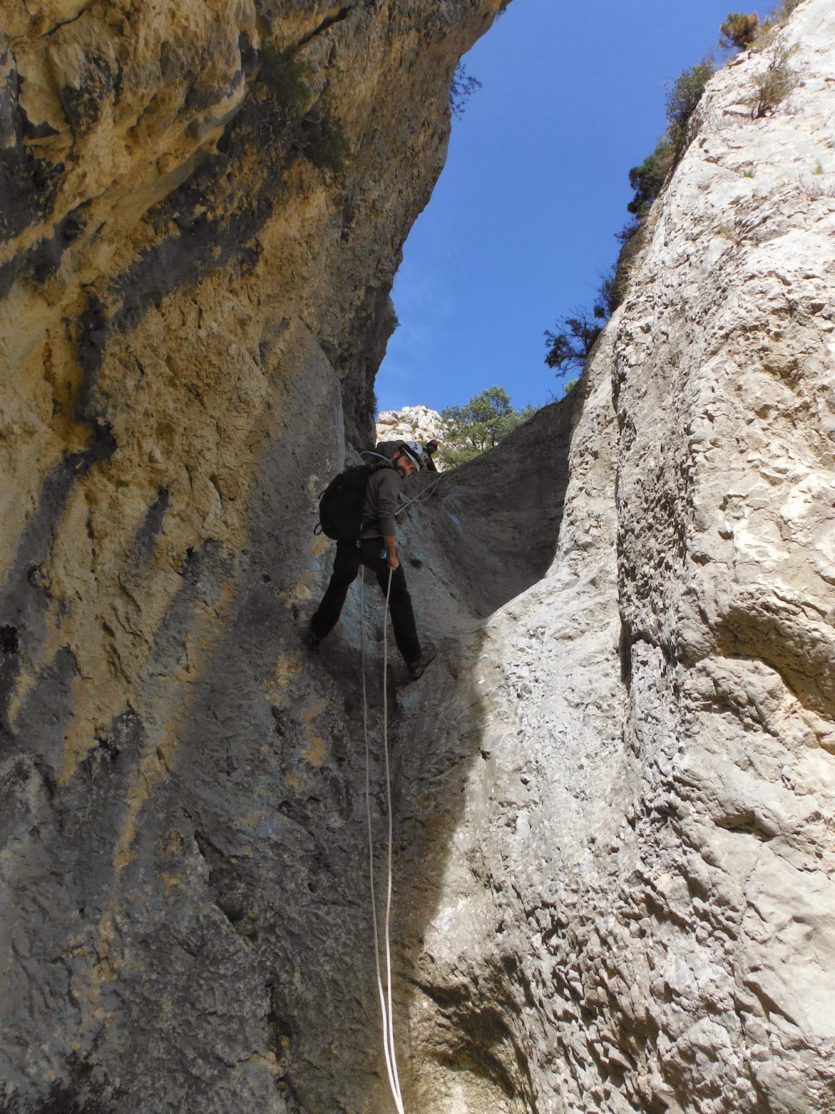 Ruben en la cabecera de uno de los rapeles del barranco |