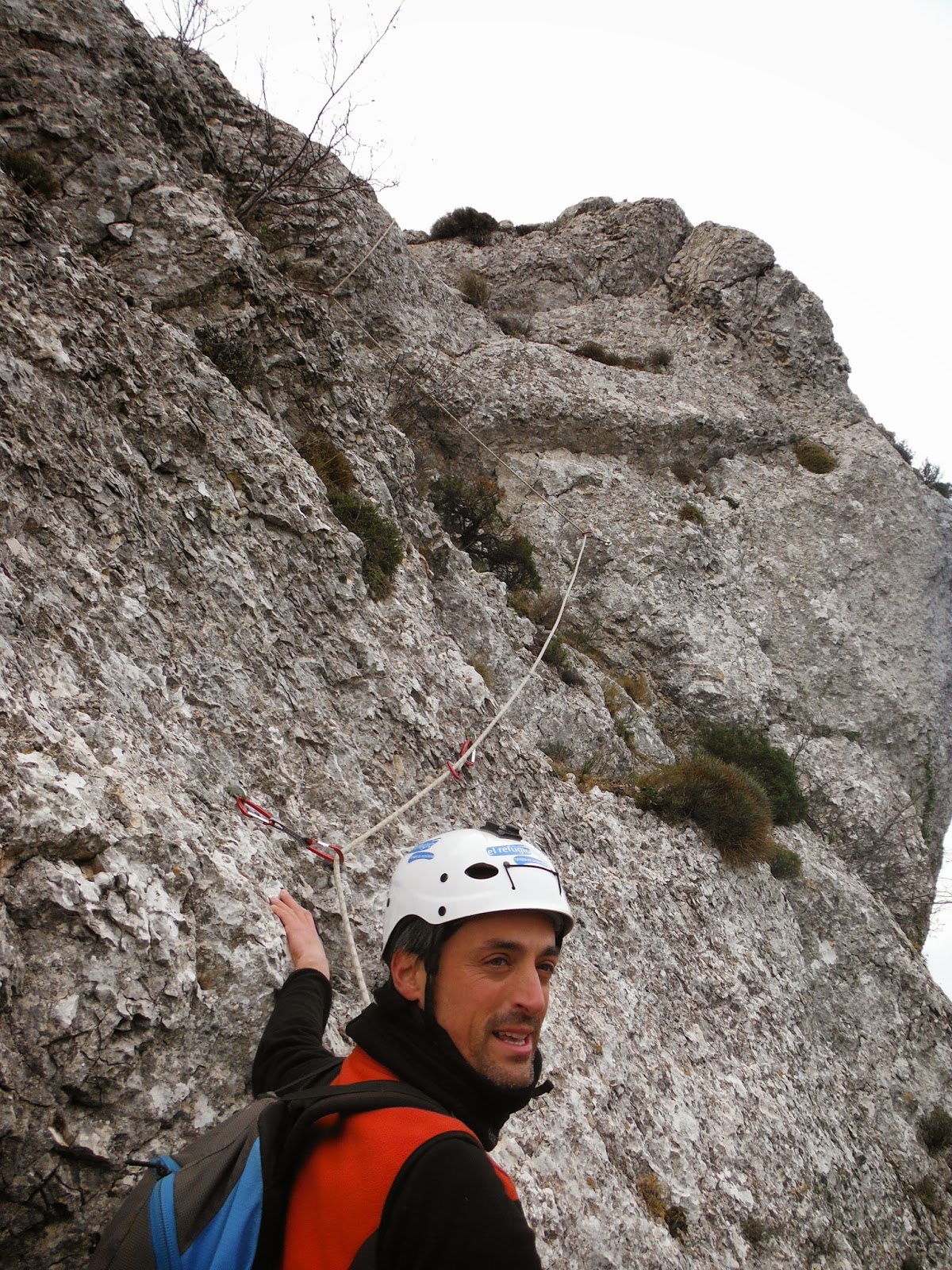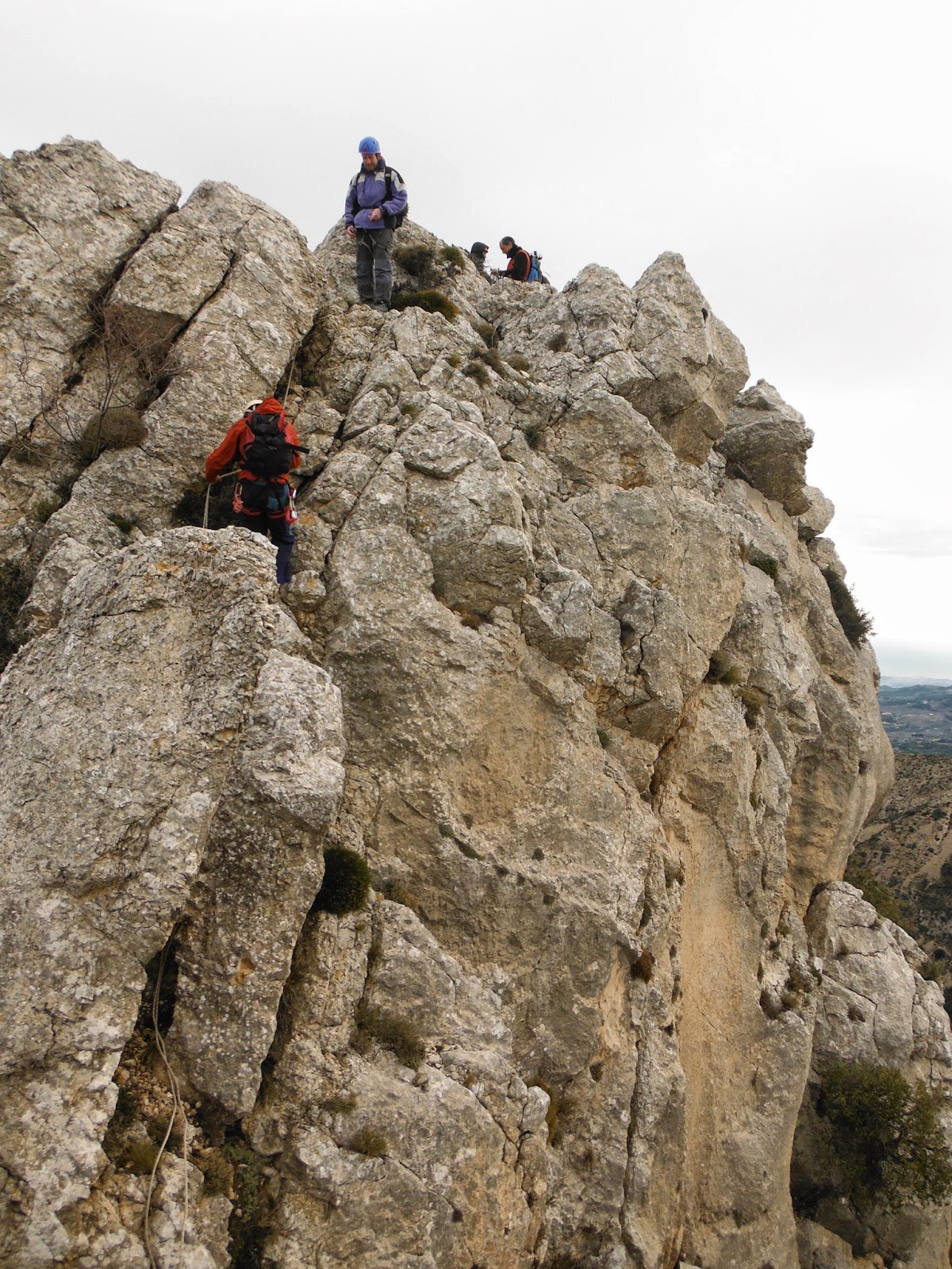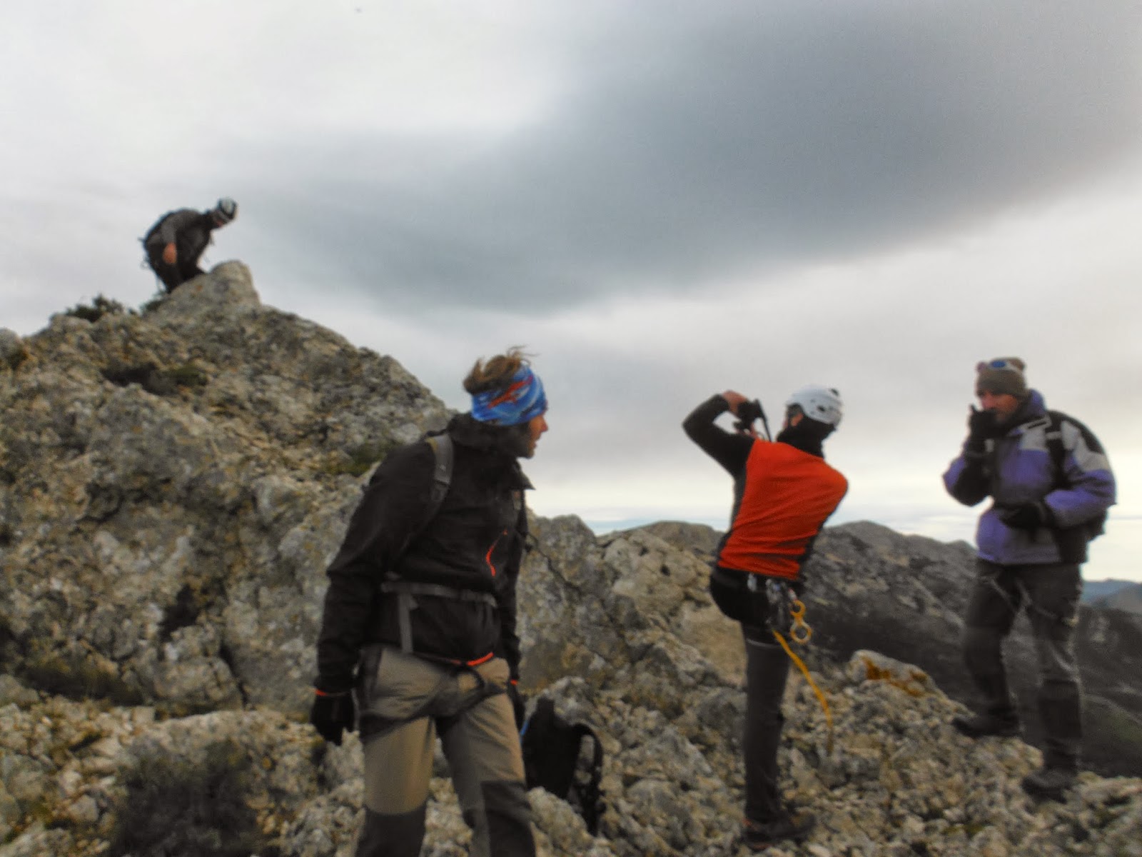 Únicamente encontré un peligro en la cresta y no nos atañía a nosotros. Es una cresta donde en su parte superior y debido a la climatología existe gran cantidad de piedra suelta. Estos días atrás ha estado muy comentado en todas las redes sociales, yo mismo en la mi pagina de Facebook, el tema de la seguridad en Montaña. Pues bien el día que realizamos la cresta, había muchos escaladores en la pared sur, incluso familias con niños, que me parece estupendo que se aficionen desde pequeños, pero la gran mayoría de ellos iban sin casco y nosotros debíamos de pasar por arriba. Eso me preocupó un poco, «¿y si caía una piedra y le daba a un niño en la cabeza?. No podía consentirlo, por lo que desde arriba les grite que debían de quitarse mientras durase nuestro paso, o por lo menos que se pusieran el casco. Algunos hicieron caso y se pusieron el casco, otros nos obviaron totalmente, pero yo al menos había hecho lo correcto. Uno de los grupos que no hizo ningún caso eran las familias con los niños. Creo seriamente que debemos de concienciar entre todos a estas personas del uso de las medidas de seguridad y entre todos hacer una labor educativa, y sobre todo a los mas pequeños. Esos niños irán creciendo y no sabrán que para escalar deben de llevar un casco, que un día les puede salvar la vida.