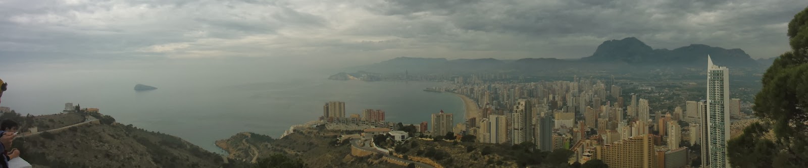 Vista panorámico de la bahía de Benidorm con su Isla y el Puig Campana al fondo