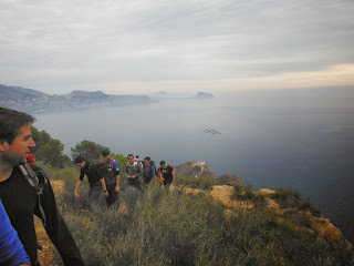 Alumnos TCAF por los acantilados con Penyon Ifach al fondo