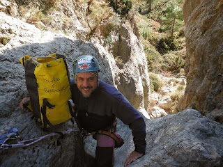 Pues en este bonito paraje y del cual ya os he hablado anteriormente, y con este telón de fondo empezamos el Barranco del Sord. Decidimos realizarlo con el neopreno puesto, debido a la época del año en la que nos encontramos en ningún momento nos sobró. Claro ésta, solo el peto.
